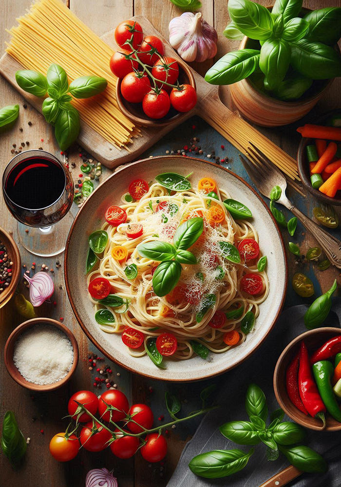 Φρέσκες ελληνικές ντομάτες, αρωματικός βασιλικός και έξτρα παρθένο ελαιόλαδο. Συνδυάζονται για να δημιουργήσουν μια φίνα, αρωματική σάλτσα ιδανική για..